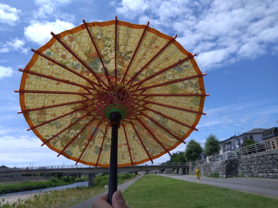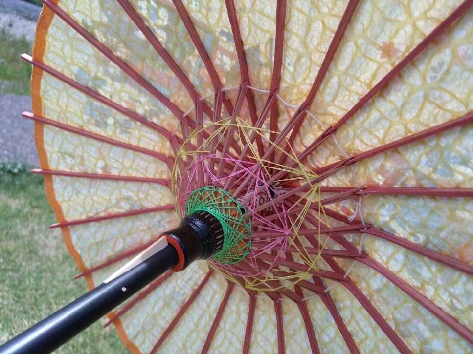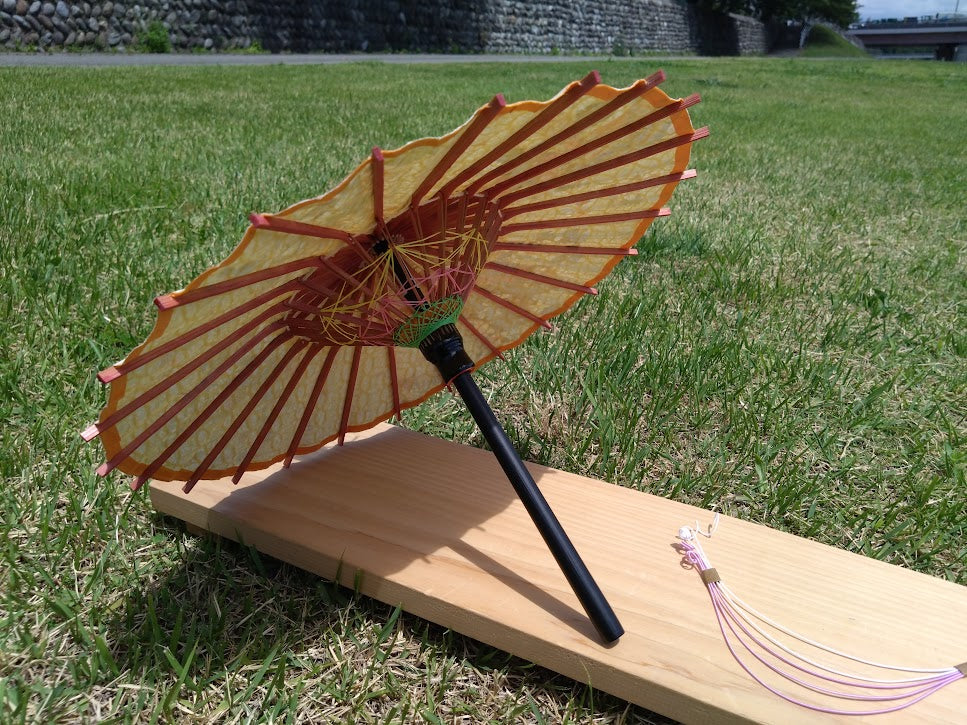Aketo's mini umbrella "Hime" is 1/3 the size of the real thing, made to order with wooden lining, and features a Japanese festival design