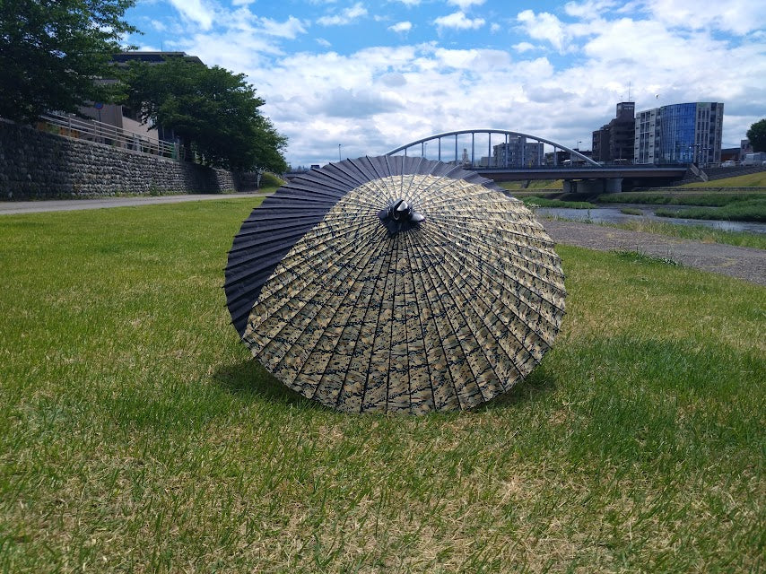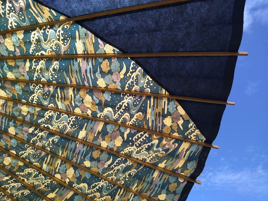 48-rib umbrella for men, original design by Akito, with lustrous wave yuzen paper