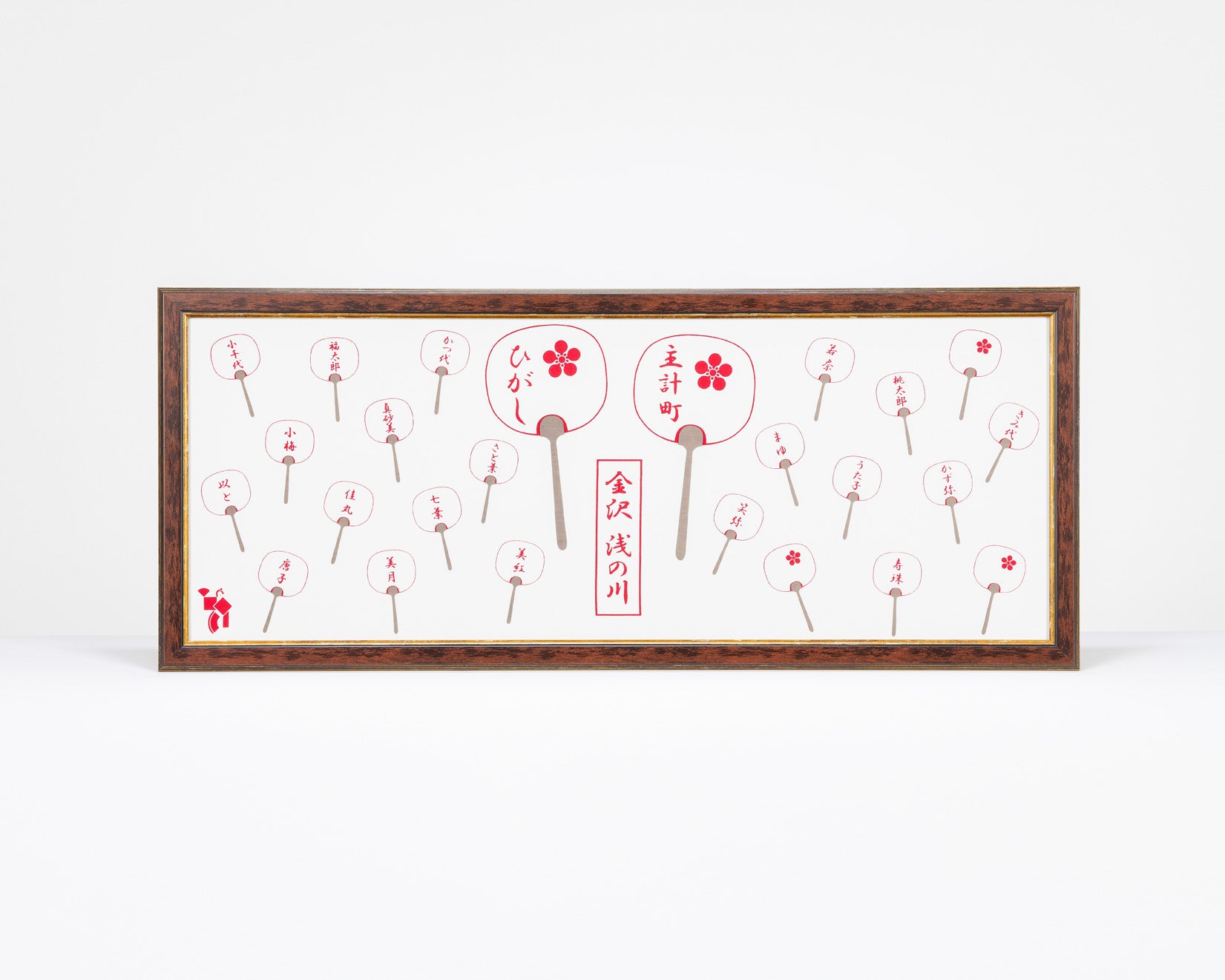 Original tenugui with the names of active geisha from Higashi Chaya District and Kazuemachi. Authentic tenugui dyed in a Yuzen dyeing studio.