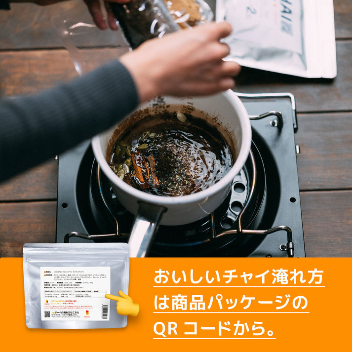 This chai spice pack allows you to easily brew authentic chai at home. This product comes in a pack of 6, which is 500 yen cheaper than buying 3 "2-pack Chai Spice Packs" separately.