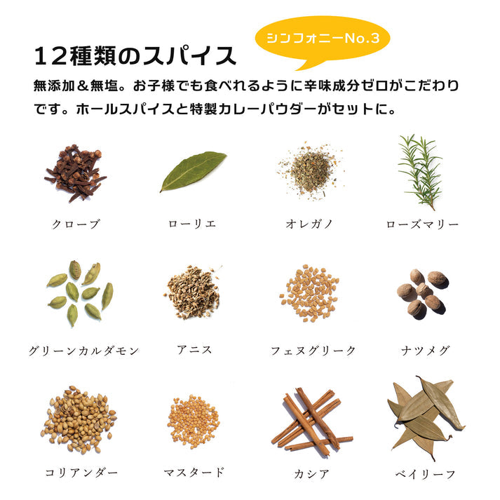 This is a great value set that includes three varieties of Symphony No. 1, 2, and 3 from the "INSPICE CURRY series," which allows you to make authentic curry at home, for just 3,090 yen instead of the usual 3,542 yen.